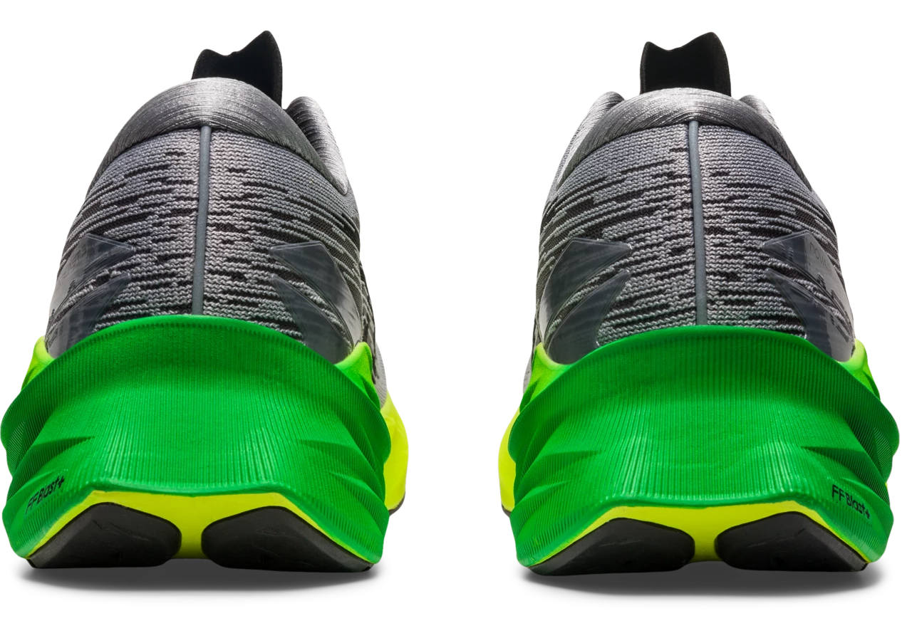 The NOVABLAST™ 3 running shoe draws inspiration from a geometric origami feature for the upper and midsole. After making the shoe approx. 30g lighter than the previous version, we also equipped this style with improved comfort. A tongue wing construction in the upper helps improve the fit while reducing tongue movement. This component is reinforced with a more supportive heel design to help guide the foot with more control through your gait cycle. Meanwhile, the midsole’s FF BLAST™ PLUS cushioning helps create a lighter and more responsive feel underfoot.