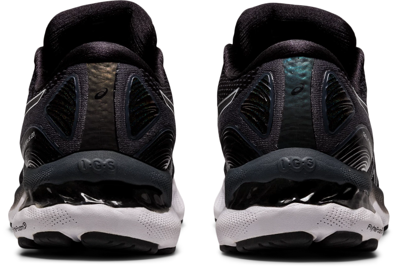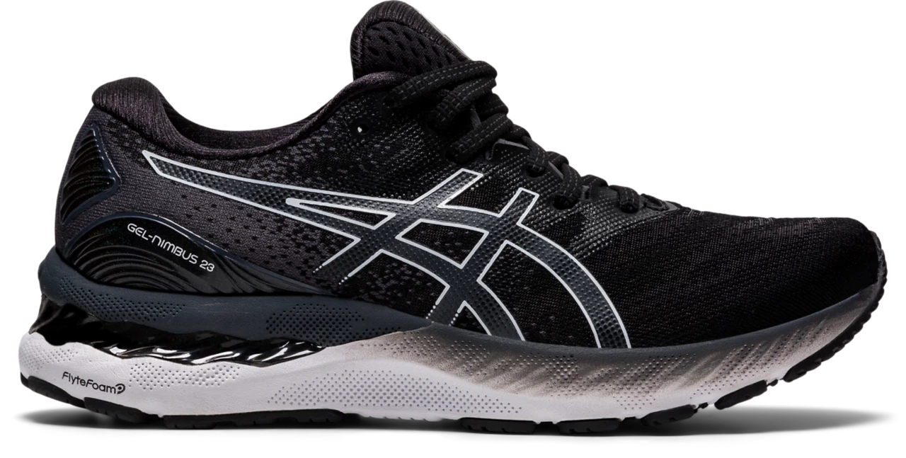The GEL-NIMBUS® 23 running shoe continues to offer excellent comfort and long-run impact absorption. Its improved stability provides a more balanced stride that’s followed by smoother transitions. Constructed with comfort and breathability in mind, the upper features a softer engineered mesh design for long runs. Engineered eyelet shaping helps the upper move more naturally with the foot, while a stretchy midfoot panel appropriately hugs the foot to generate better flexibility. Providing the runner with excellent shock absorption and softness, the GEL-NIMBUS® 23 delivers more compression in the heel thanks to its softer GEL® technology cushioning unit and contoured design lines. Also, a gender-specific TRUSSTIC™ device provides an articulated amount of support in the right direction for men and women to help generate a smooth transition. Under the toe, the inclusion of gender-specific pillars help cushion the body and help runners experience a softer feel. Simultaneously, the ORTHOLITE™ X-55 sockliner equips runners with a forgiving, yet responsive stride. The components of the GEL-NIMBUS® 23 shoe help increase the softness without forgoing the integrity of the shoe’s ride. Our 23rd version of the GEL-NIMBUS® continues to make advancements within the lineage by offering improved support and comfort for distance runners.
