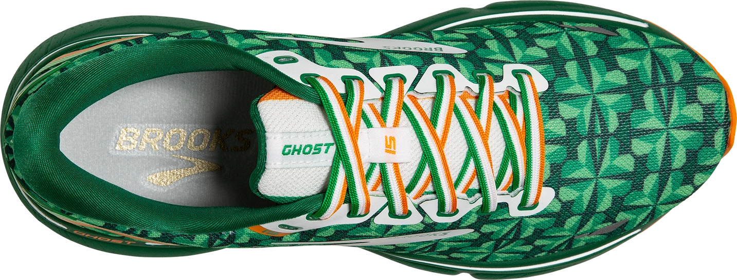 BROOKS Men’s Ghost 15 “Run Lucky” (371 – Green/White/Orange)