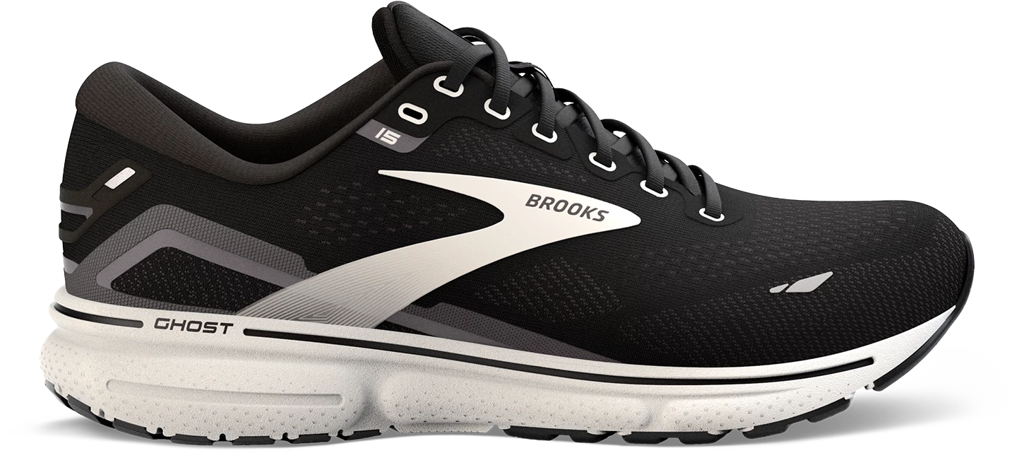 BROOKS Men’s Ghost 15 WIDE (012 – Black/Blackened Pearl/White)