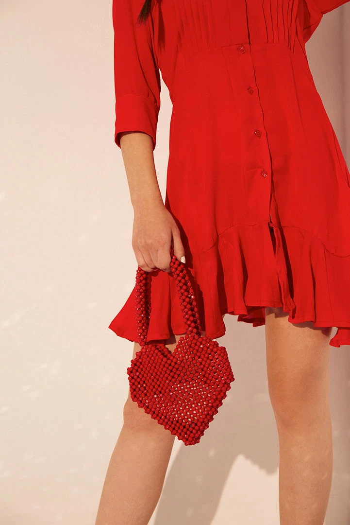 Office party or corporate events We have just the dress for you! Step out in the Aubrey red knee-length party full sleeves dress, which has front and back pleating, and the godet is the bottom adding a flair look to the piece.A perfect addition to your workwear party collection