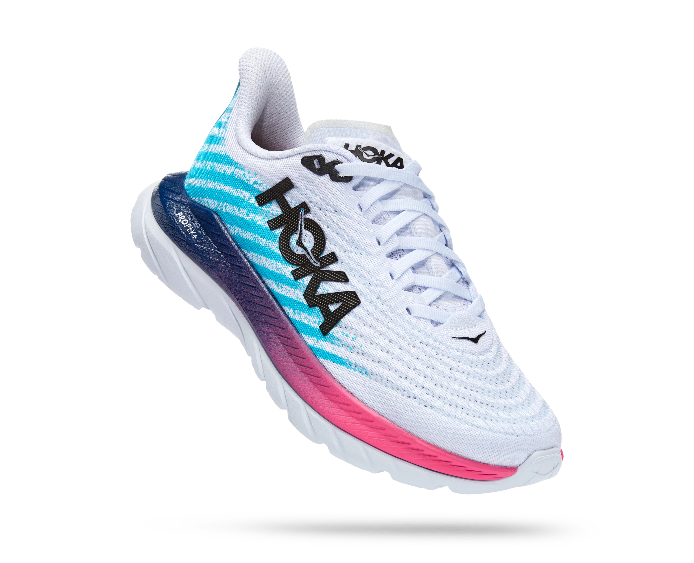 The lovechild of Mach 4 and Mach Supersonic, this lively pavement pounder is built for performance and ready to race. Sporting a stripped back creel mesh upper and lay-flat tongue, the new Mach 5 delivers a snappier ride with PROFLY’s stacked midsole setup, offering a lightweight, responsive foam directly underfoot and rubberized EVA below.