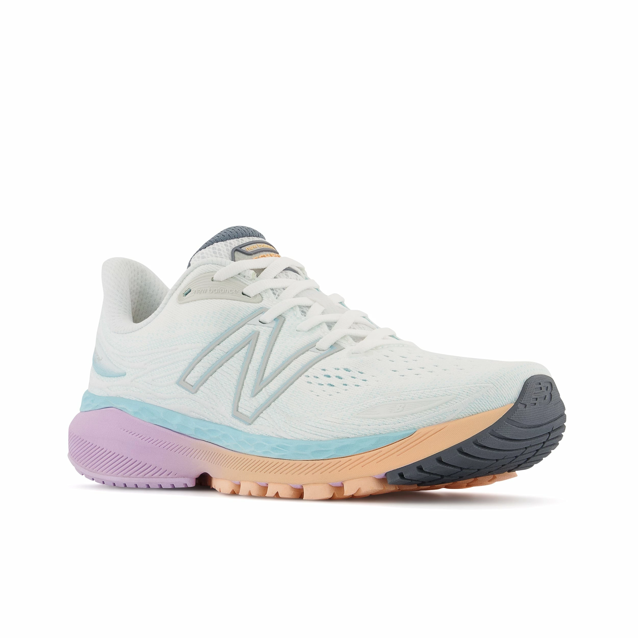New Balance’s 860v12 women’s running shoe is built for durable support and comfort. A Fresh Foam midsole provides super soft cushioning while a dual-density medial post and strategic embroidery in the upper offer reliable support, mile after mile.