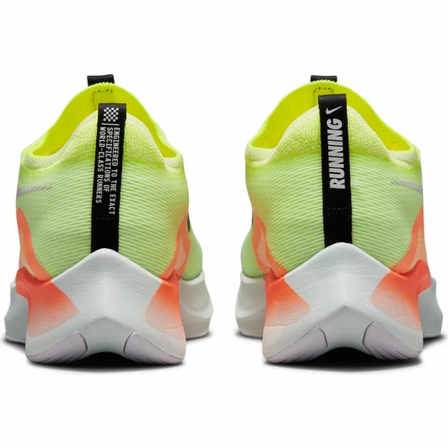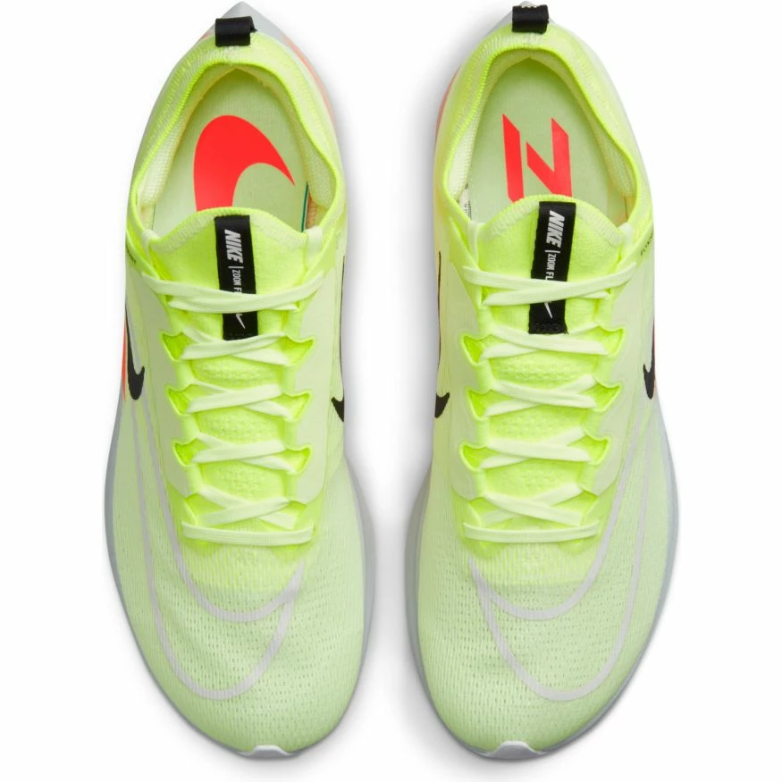 Midfoot support arrives courtesy of 4 individual pieces of webbing that intertwine with the laces. When you lace up, the shoe gets tighter, giving you stability. Also, an internal heel pod delivers a more secure fit than the Zoom Fly 3.