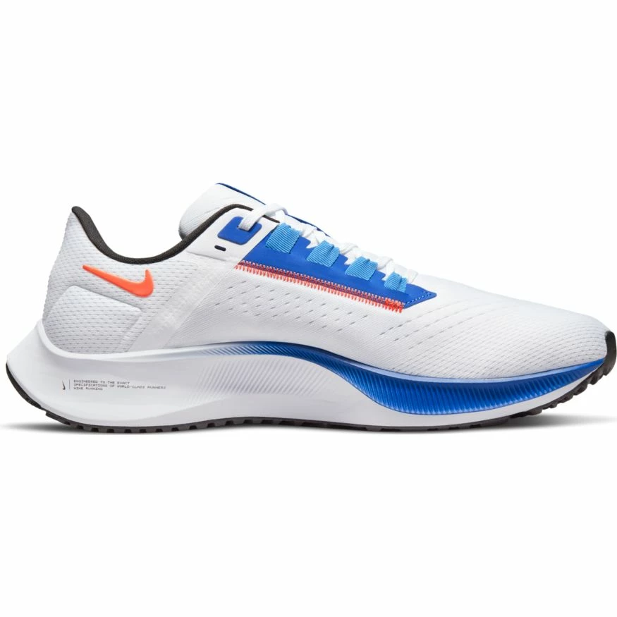 Your workhorse with wings returns. The Nike Air Zoom Pegasus 38 continues to put a spring in your step, using the same responsive foam as its predecessor. Breathable mesh in the upper combines the comfort and durability you want with a wider fit at the toes.