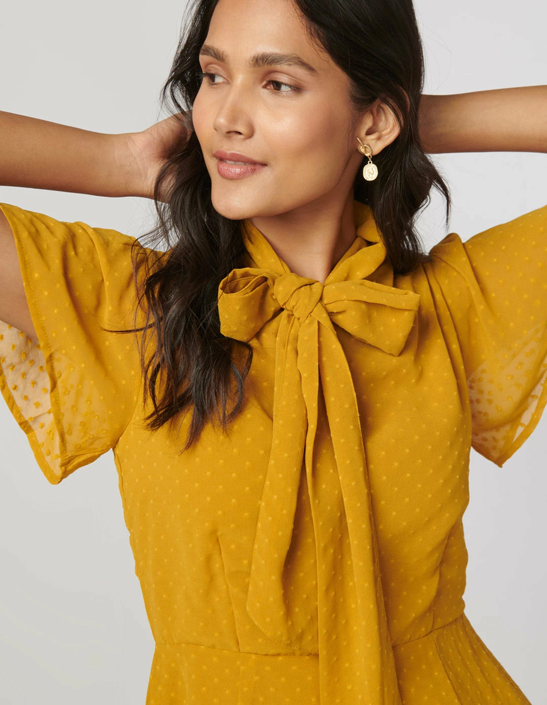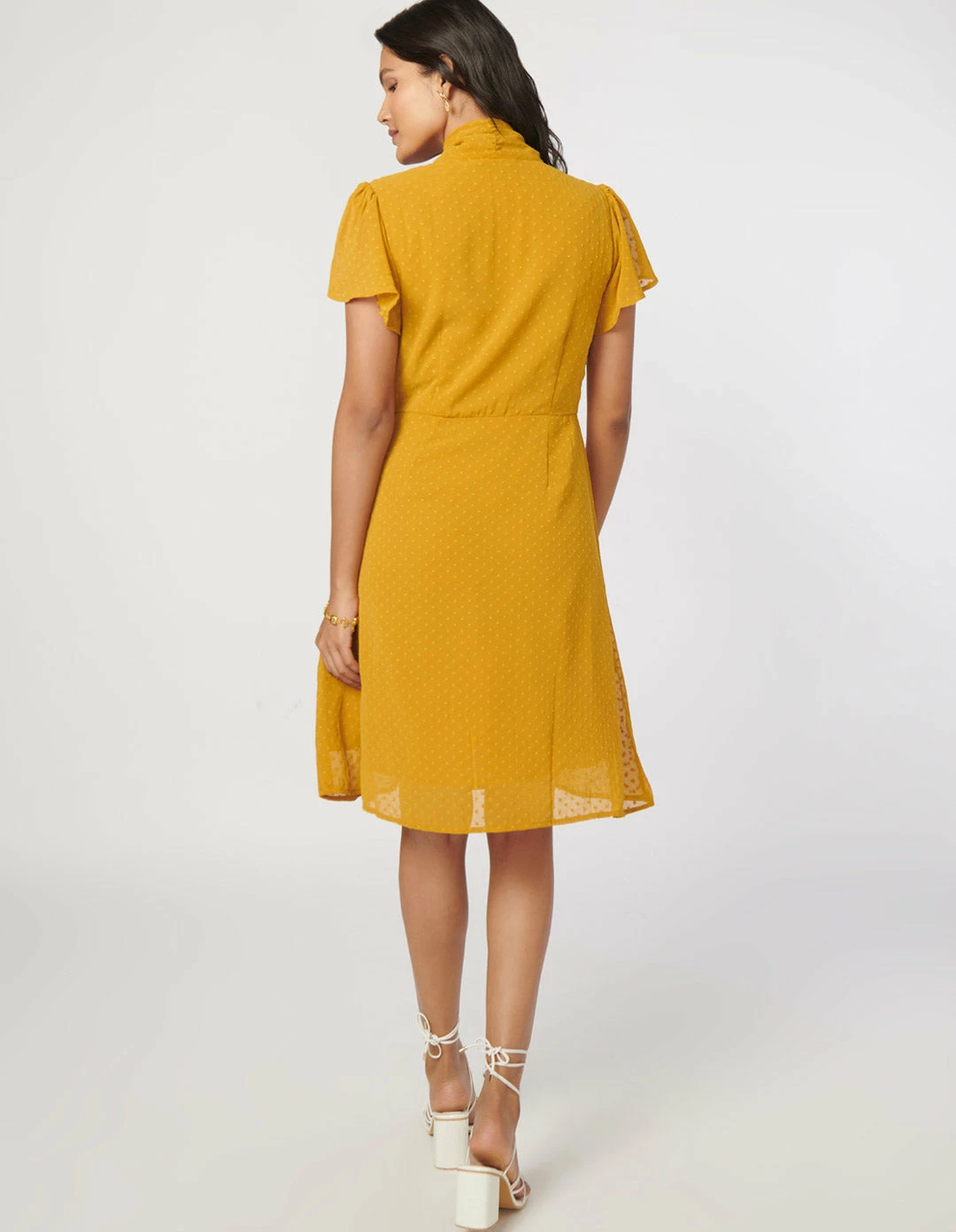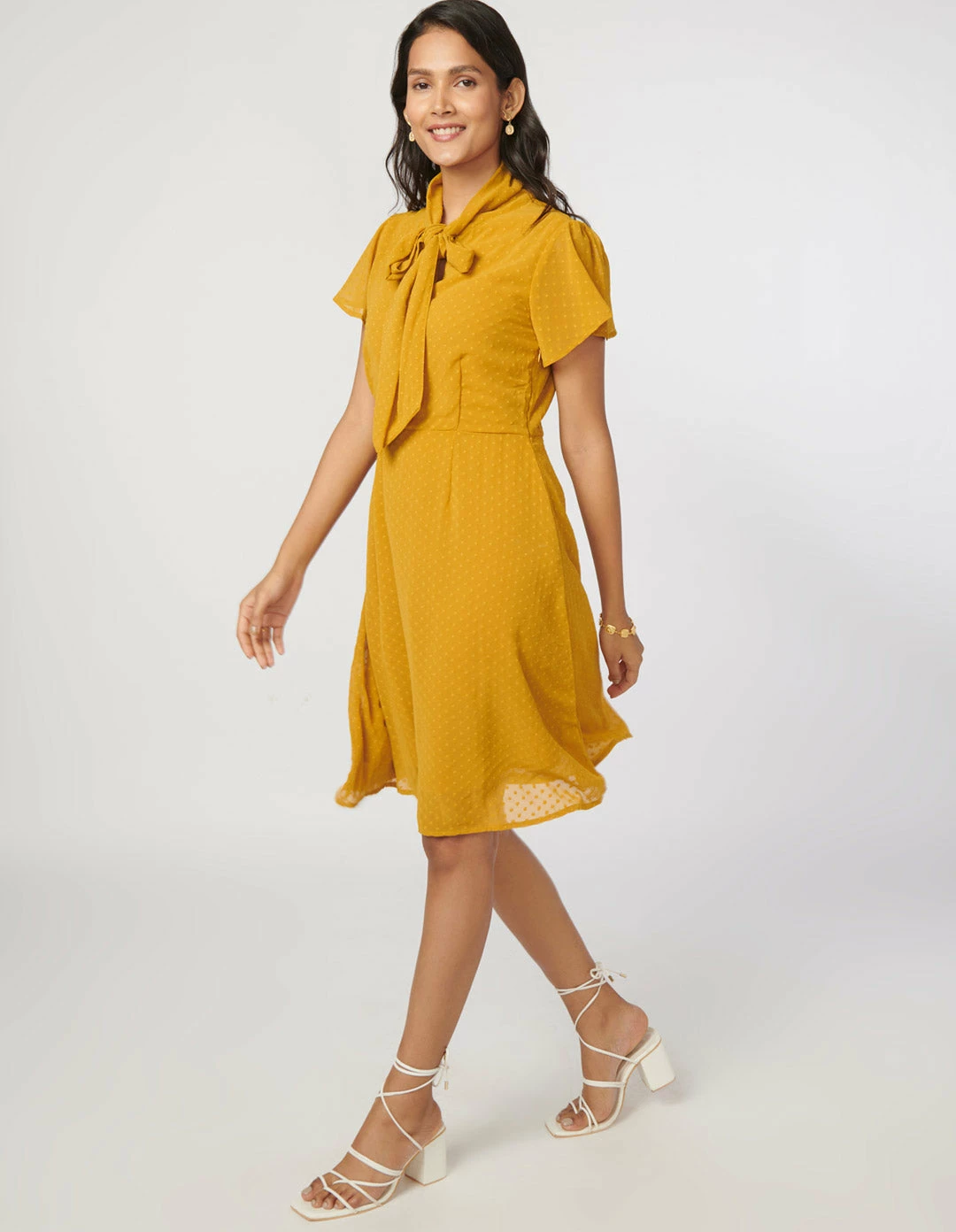 Not So Pink Mustard Neck Tie Flare Dress