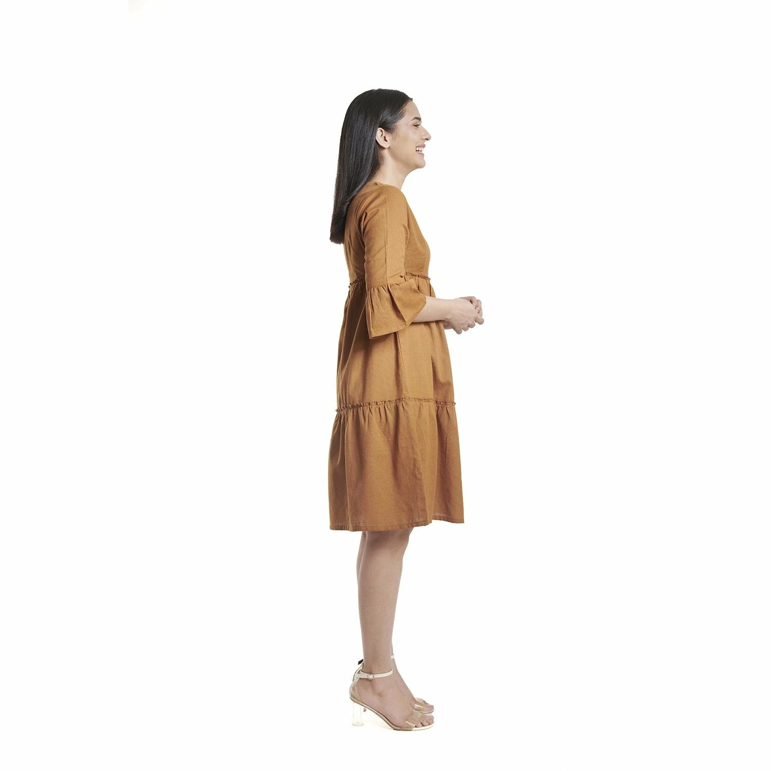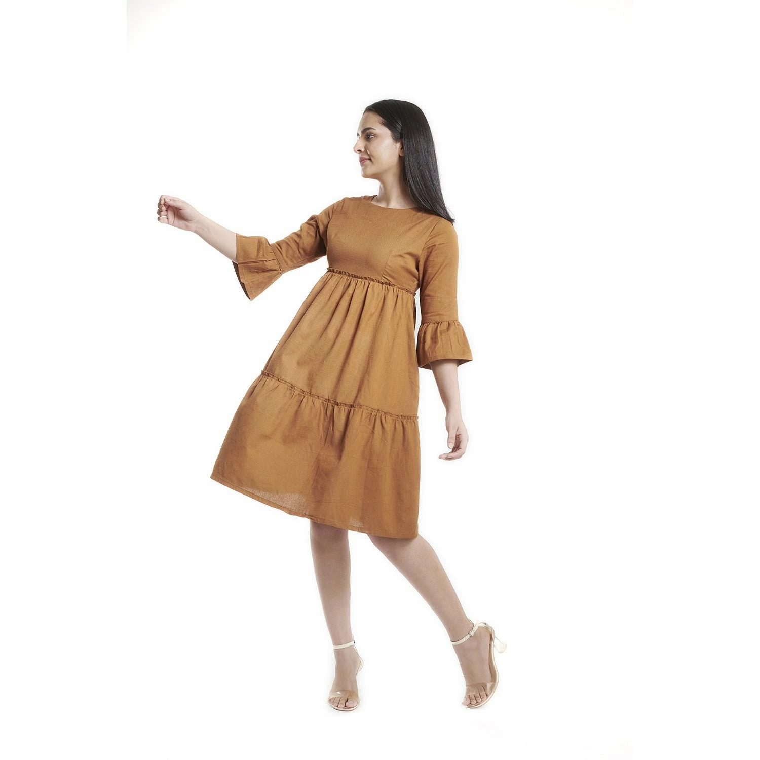 | This lovely mustard yellow tiered dress has bell sleeves and is made in cotton breathable fabric. Material: Cotton Wash care: Easy to care/Machine Wash/Hand Wash, Do not tumble dry/Hang dry/Do not bleach. |